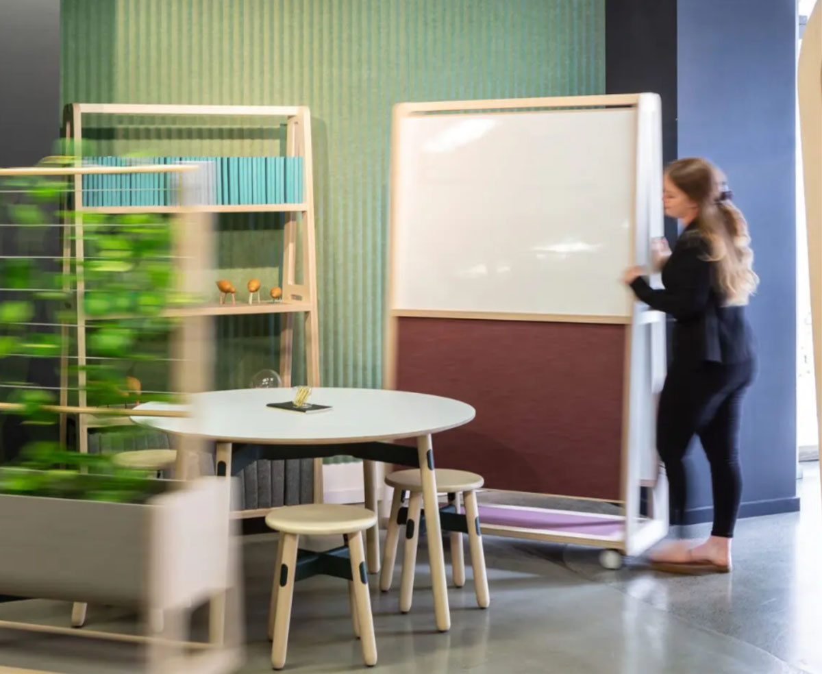 wood softwall + softblock flexible partitions are the result of two decades of research and development. Made from sheets of translucent, engineered wood veneer, the partitions are functional art pieces and adjustable sculptures. The veneer is made from sustainably sourced, rapidly renewable materials and is FSC® Certified (FSC® C158591). The tear-resistant…