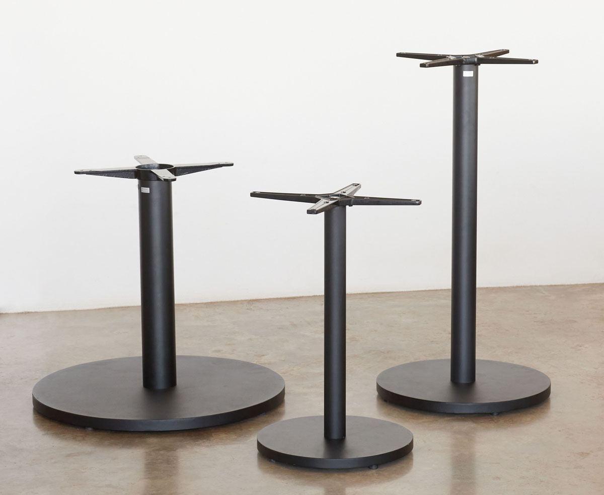 The NOROCK Lunar table base is a sleek, disc-shaped design built from powder-coated steel with NOROCK’s patented self-stabilising technology. It comes in three base sizes (17, 21, 30) across dining, counter, and bar heights, supporting tops from 550mm up to 1500mm. Designed for minimal, clean space.