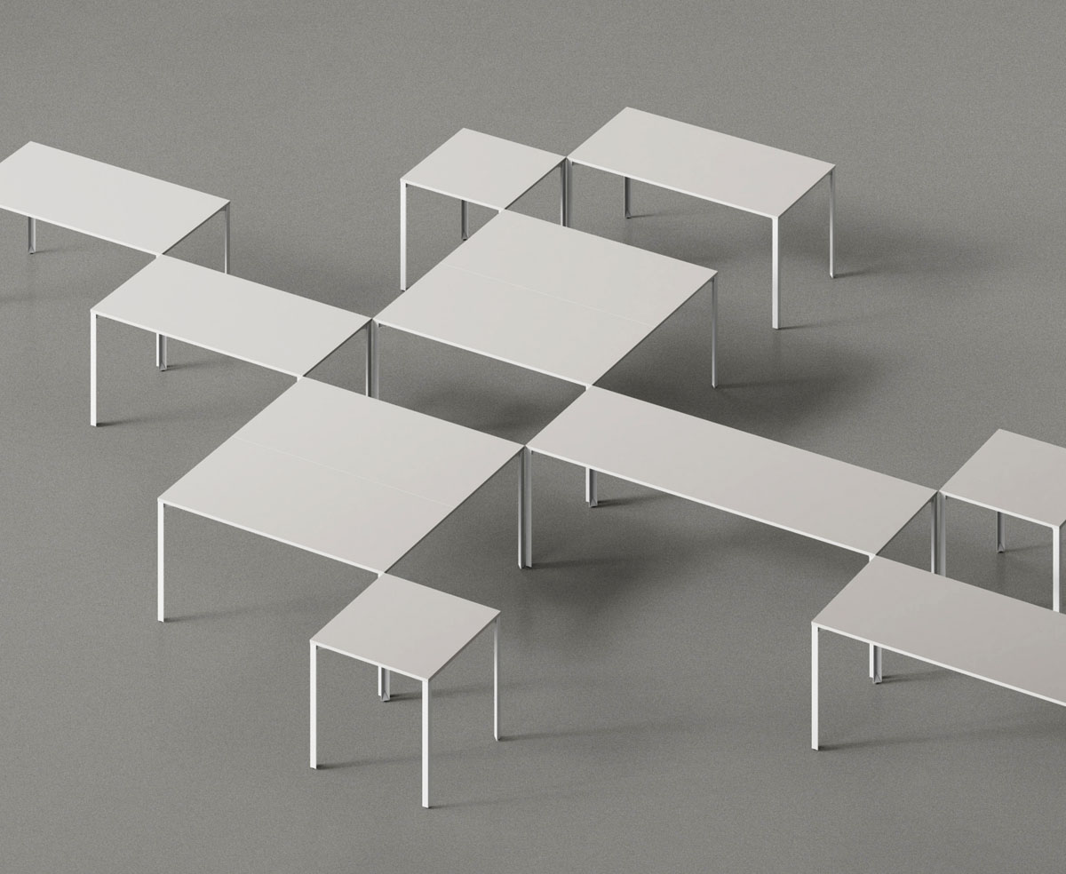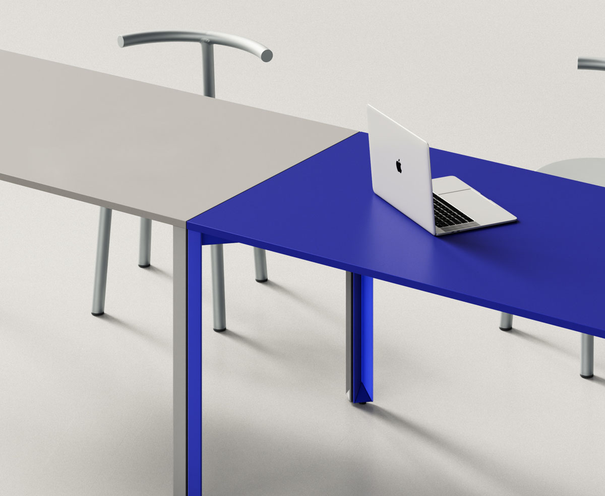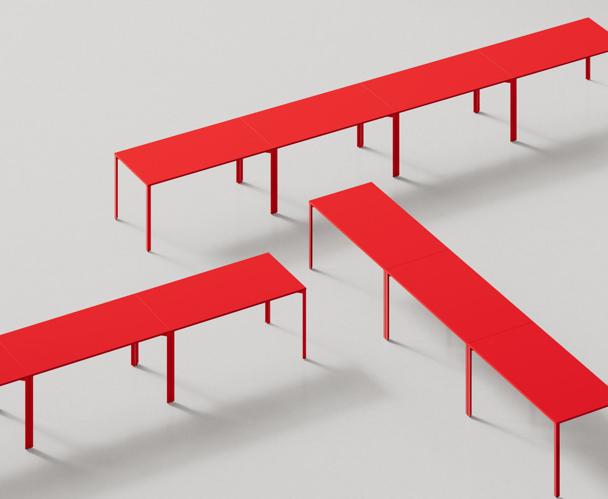 GRID Table Collection, designed by London- based studio Industrial Facility, is the first product in the new Basics range. Effective as worktops, dining tables, side tables, or desks, GRID tables are easily assembled, lifted, reconfigured and packaged. GRID’s sturdy steel legs are combined with a choice of tops, showcased with Kvadrat’s ‘Really’ top, an affordable, recycled and circular option made from discarded T-shirts. Its modular design responding to the emerging behaviours of our public realm. Playfully joining squares and rectangles, colours and tops.
