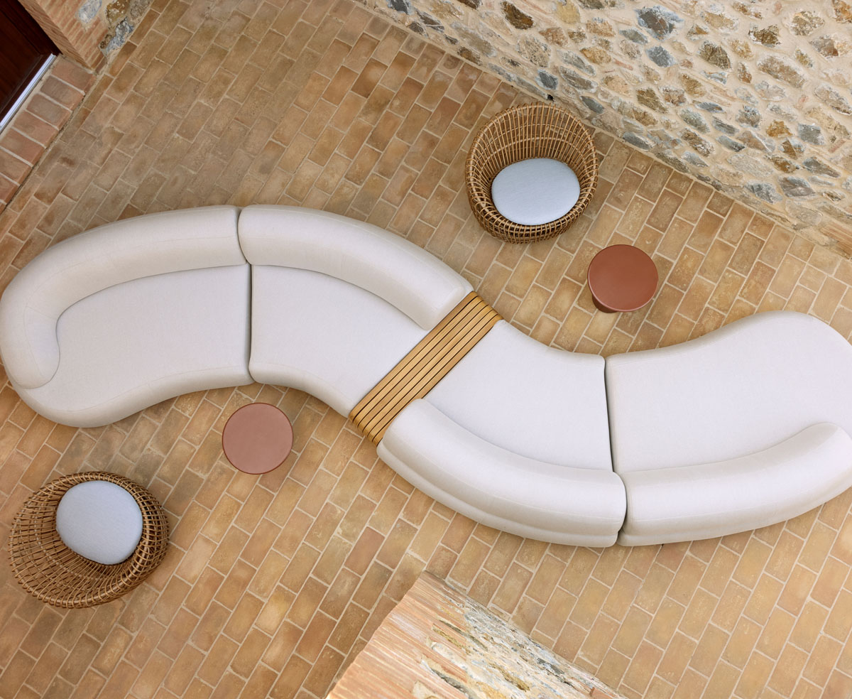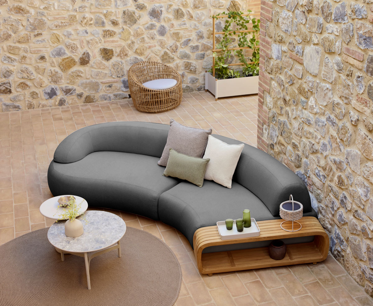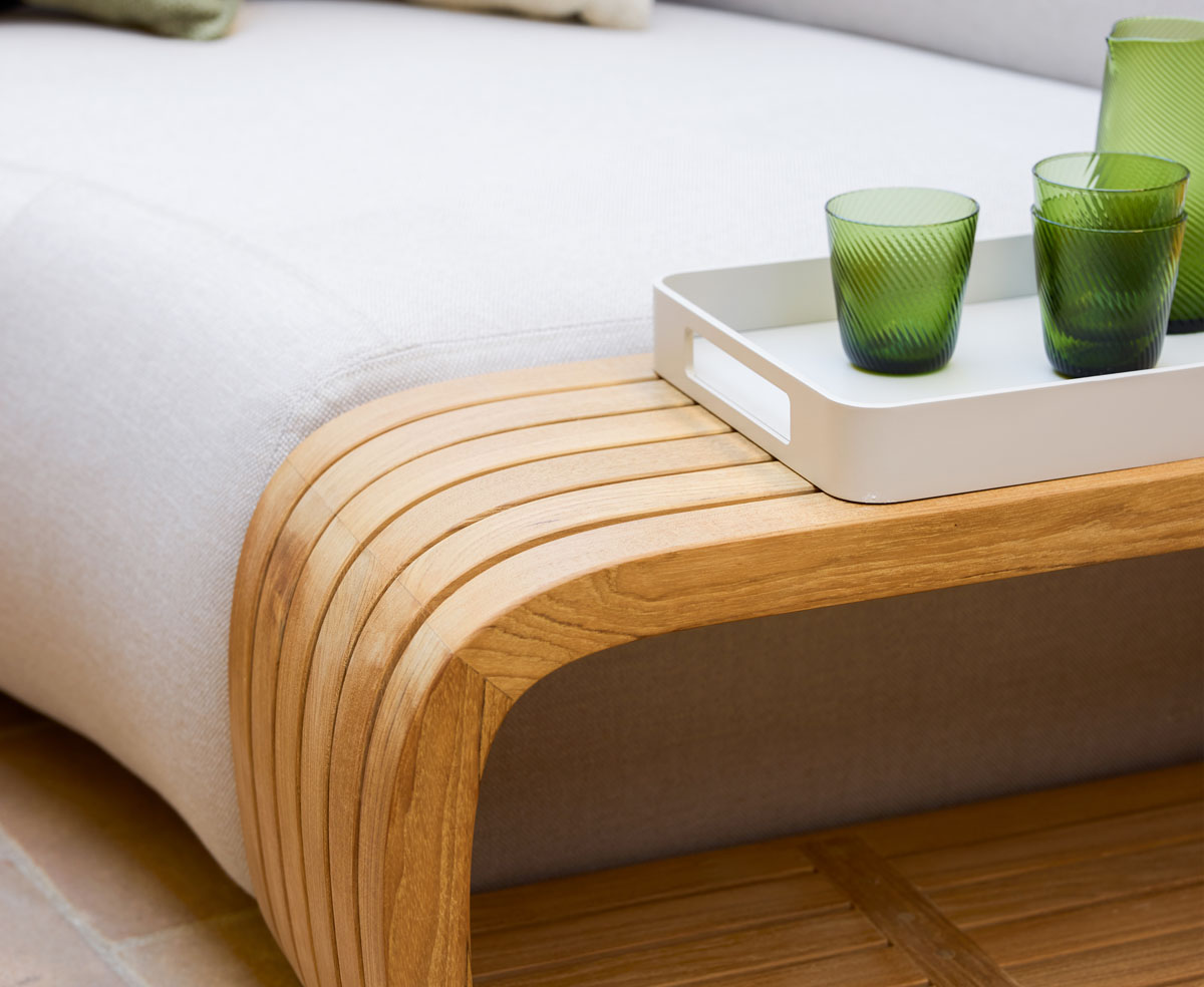 The Mellow coffee table is a flexible piece that complements your outdoor lounge, whether used on its own or easily connected to the Mellow sofa setup. Crafted from premium Grade A teak, it offers a natural, warm touch that matches any outdoor setting. The durable teak is weather-resistant, making it an ideal choice for outdoor use. With its sleek, curvy shape, the Mellow coffee table brings both style and functionality without taking up much space. Its compact design is perfect for smaller spaces while still providing enough surface for drinks, books or décor.