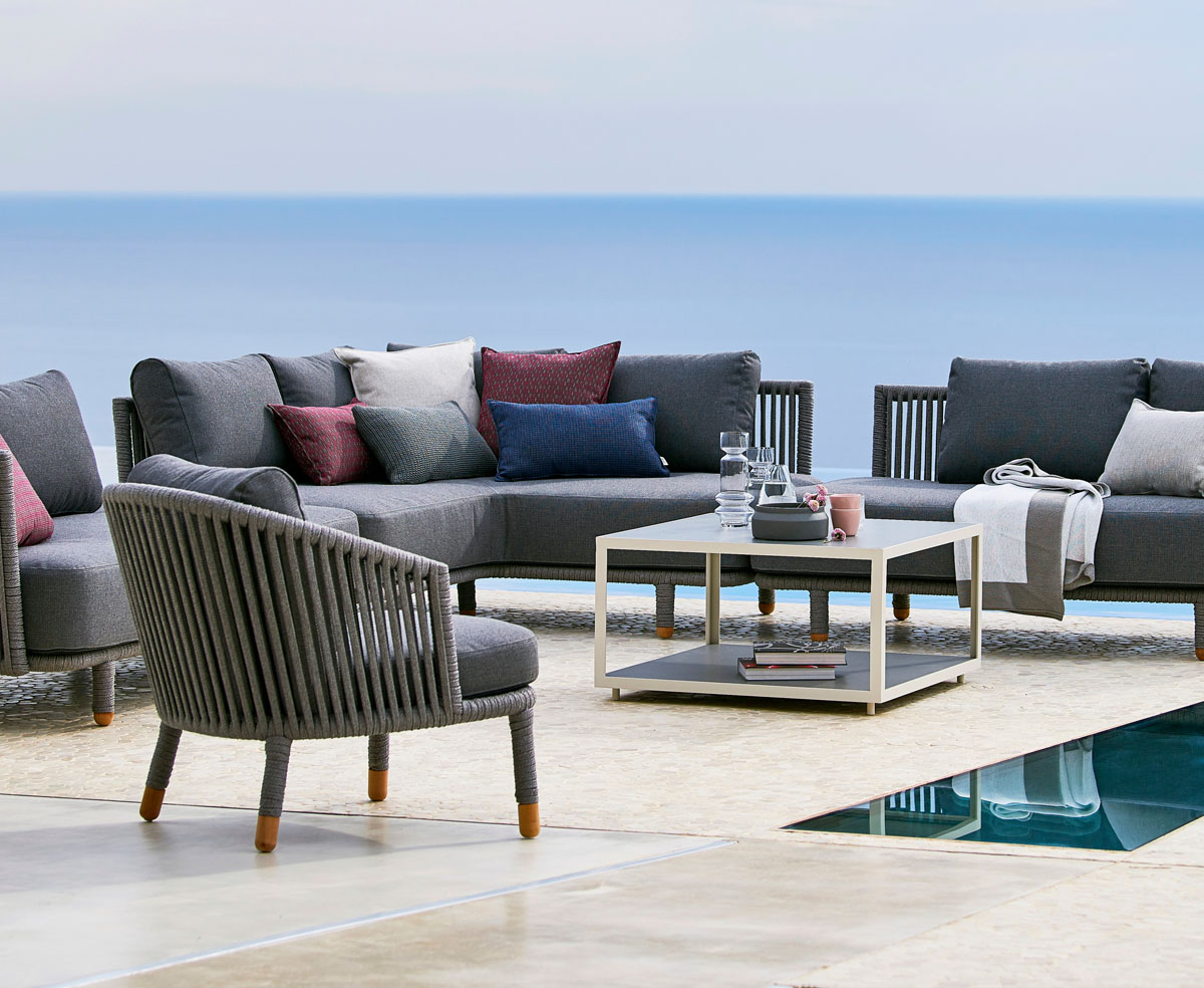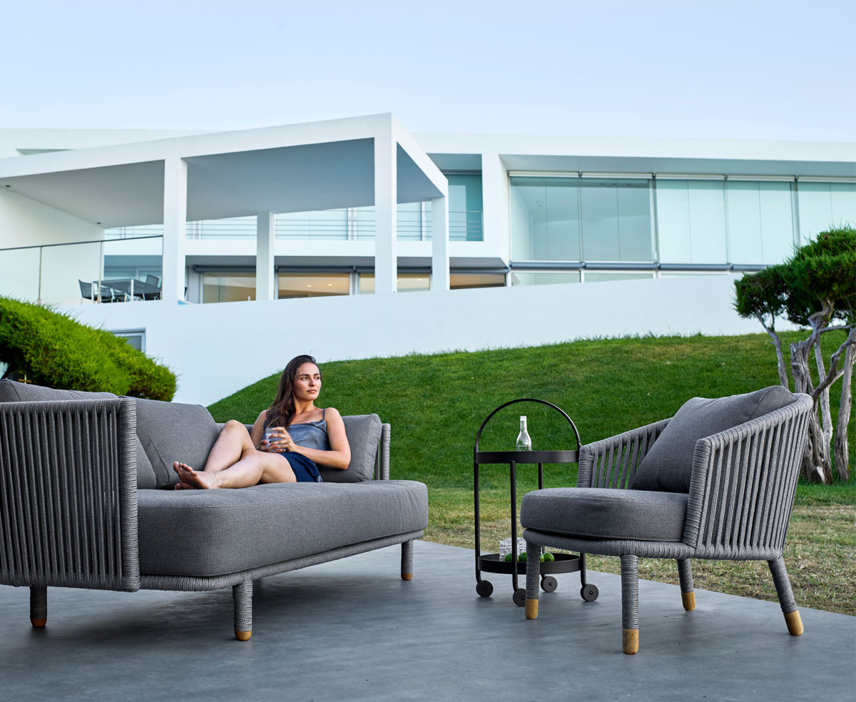 Moments lounge chair is designed by the Danish designduo Foersom & Hiort-Lorenzen MDD. Moments is setting new standards for multi flexible design with its elegant minimalistic Scandinavian design. It is produced with Cane-line Soft Rope and comfortable Swipe fabric cushions.