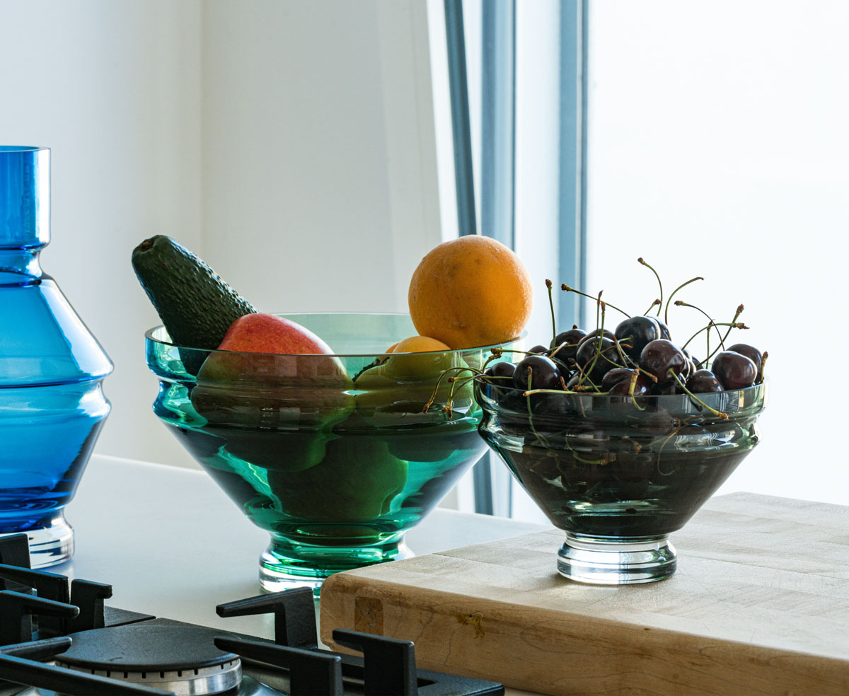The Raawii Relæ Glass Bowl is a sculptural yet functional piece crafted from mouth-blown glass. Its geometric form and vibrant colour options create a striking balance between aesthetics and utility. With a focus on light, transparency, and bold design, the bowl serves as both a practical vessel and a statement piece for contemporary interiors.