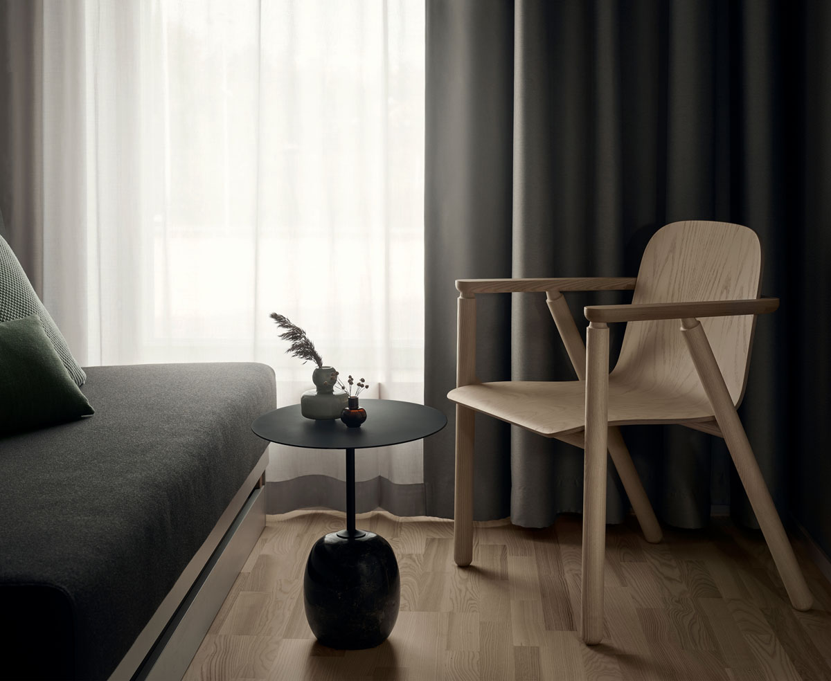 Born from the duality of hotel and workspace, the VALO Lounge Chair is a modern classic that bridges comfort and function. Originally designed for the VALO Hotel & Work in Helsinki, this piece responds to the evolving needs of hybrid living—where rest and productivity share the same space. Crafted locally in Finland from Nordic wood, the chair is a reinterpretation of Finnish design heritage. Its padded seat and angled backrest offer ergonomic ease, while the armrests are positioned to pair seamlessly with an adjustable laptop desk. Detachable upholstery ensures longevity, allowing the chair to evolve with its environment and purpose.
